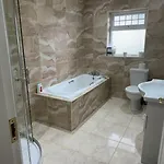 Badeværelsesfaciliteterne er udstyret med et badekar og en bruser.
